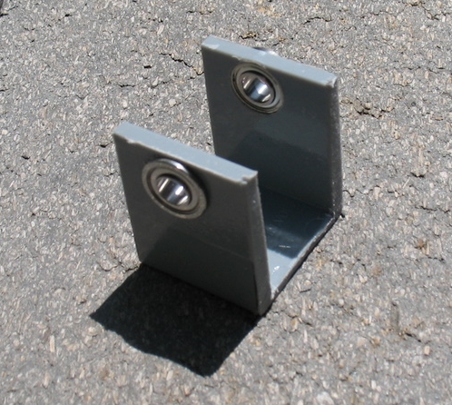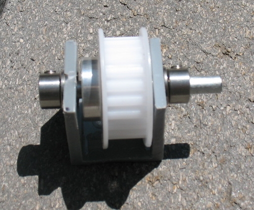 The first thing we did was build the timing belt pulley assemblies. There are a lot of possible ways to do this, but basically we used a collar-bearing-bracket-pulley-bracket-bearing-collar setup. We made several metal L brackets - just drilled a 1/2" hole in them for the ball bearings to fit in to. Then we saw some electrical conduit boxes at Home Depot and used them to make U shaped bracket. Both approaches are fine. It helps to have some shorter 1/4 rods to test these out - we used 2.5" pieces for ours.Intro | 1 | 2 | 3 | 4 | 5 | 6 | 7 | 8